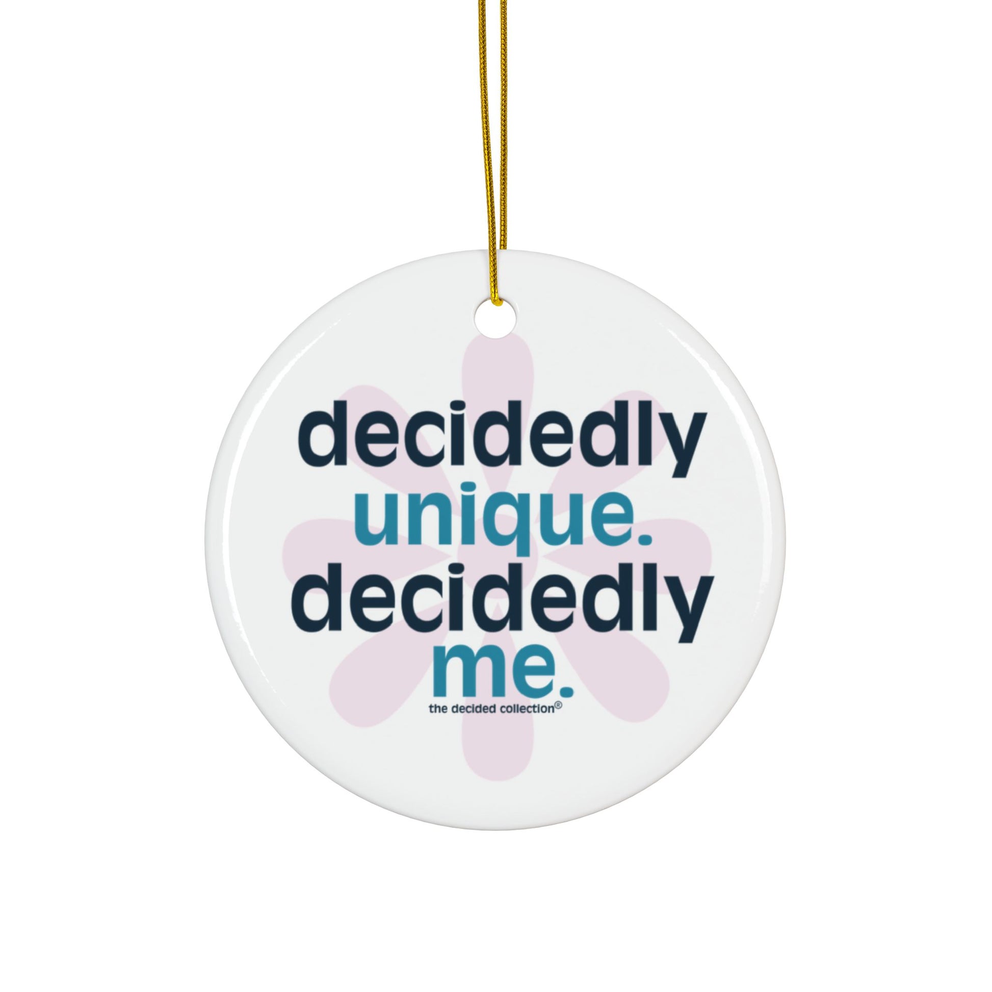 This Decidedly Unique. Decidedly Me. ceramic ornament is made for the girl who loves to stand out and shine in her own way. With a glossy finish and modern, playful design, it’s the perfect addition to your holiday tree, bedroom garland, or gift wrap ribbon.